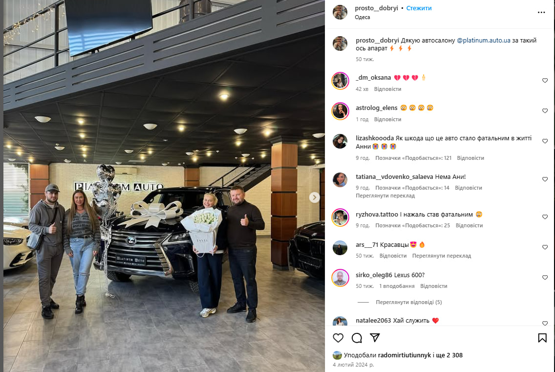 4 февраля 2024 года Жук и Билевцов купили Lexus.