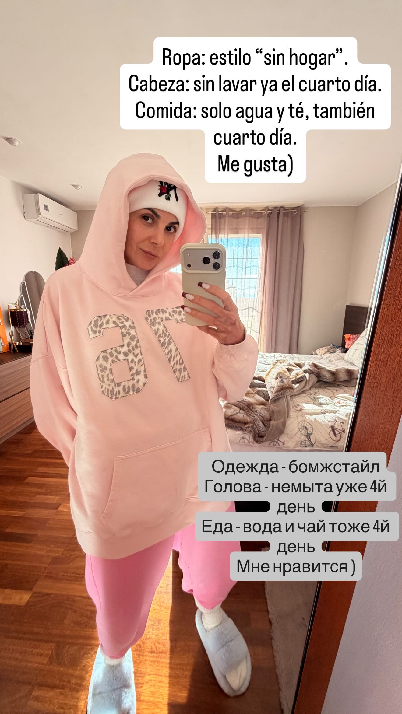 "Одежда – бомжстайл. Голова не мыта уже четвертый день. Еда – вода и чай – тоже четвертый день. Мне нравится", – написала певица.