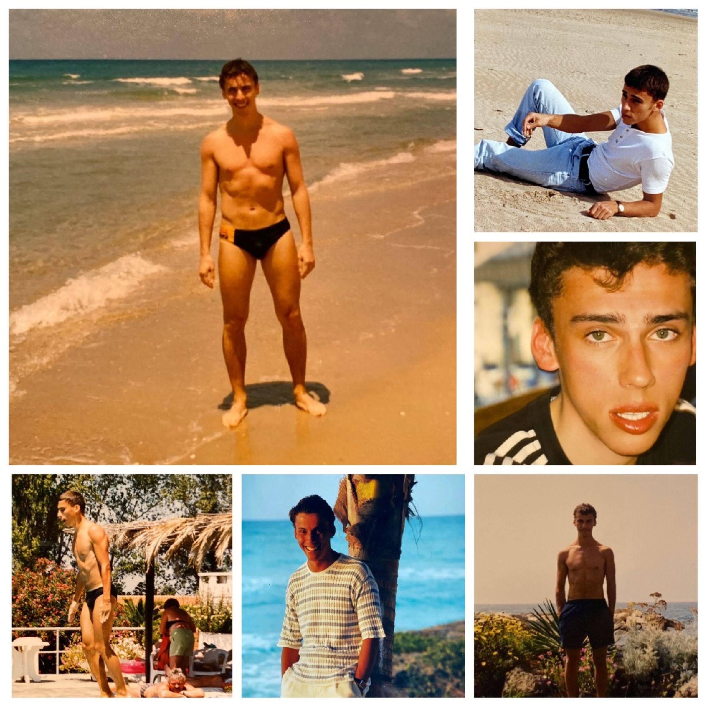 Многие фото сделаны во время отдыха на тот момент почти 20-летнего Галкина на пляже.