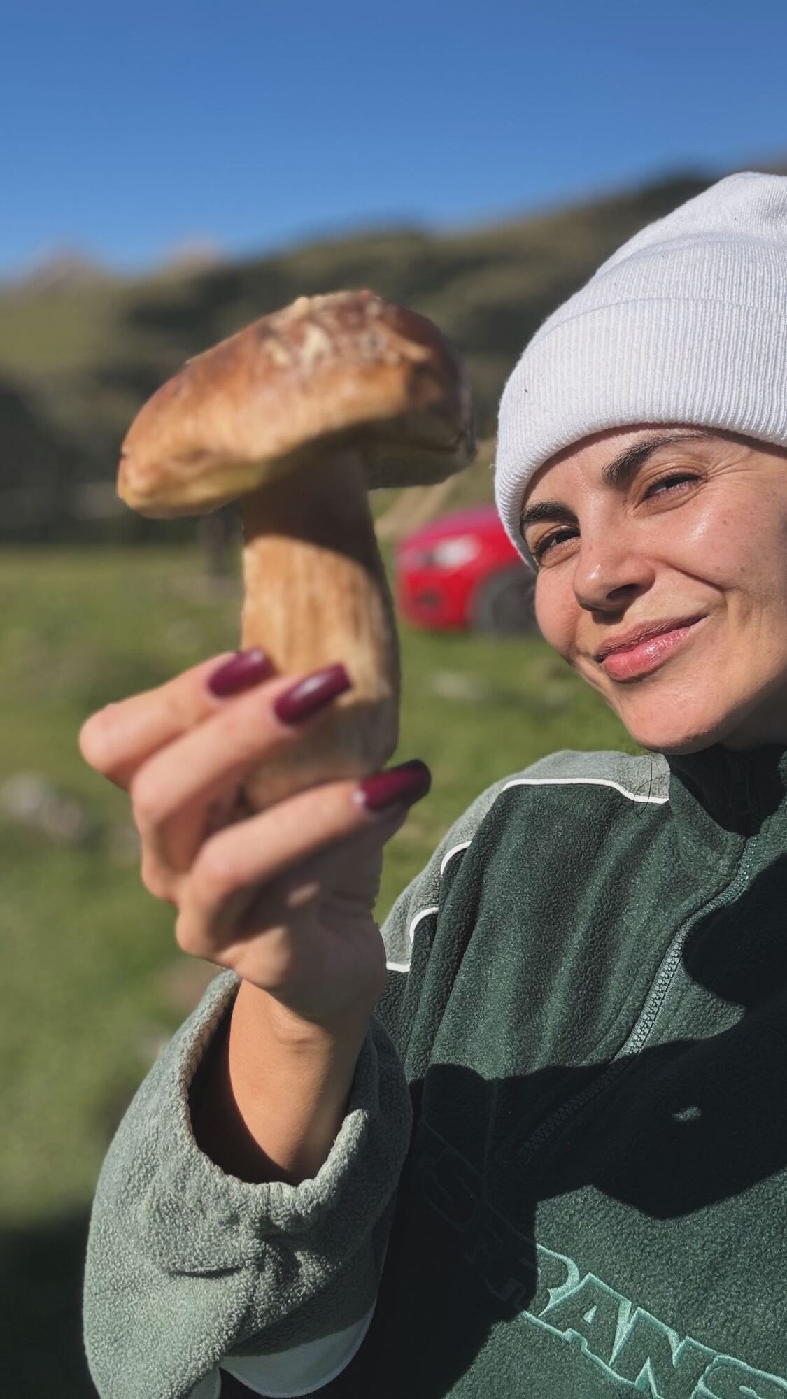 Певица вышла на "тихую охоту", как называют сбор грибов. Она показала, как увидела гриб, после чего подошла и срезала его.