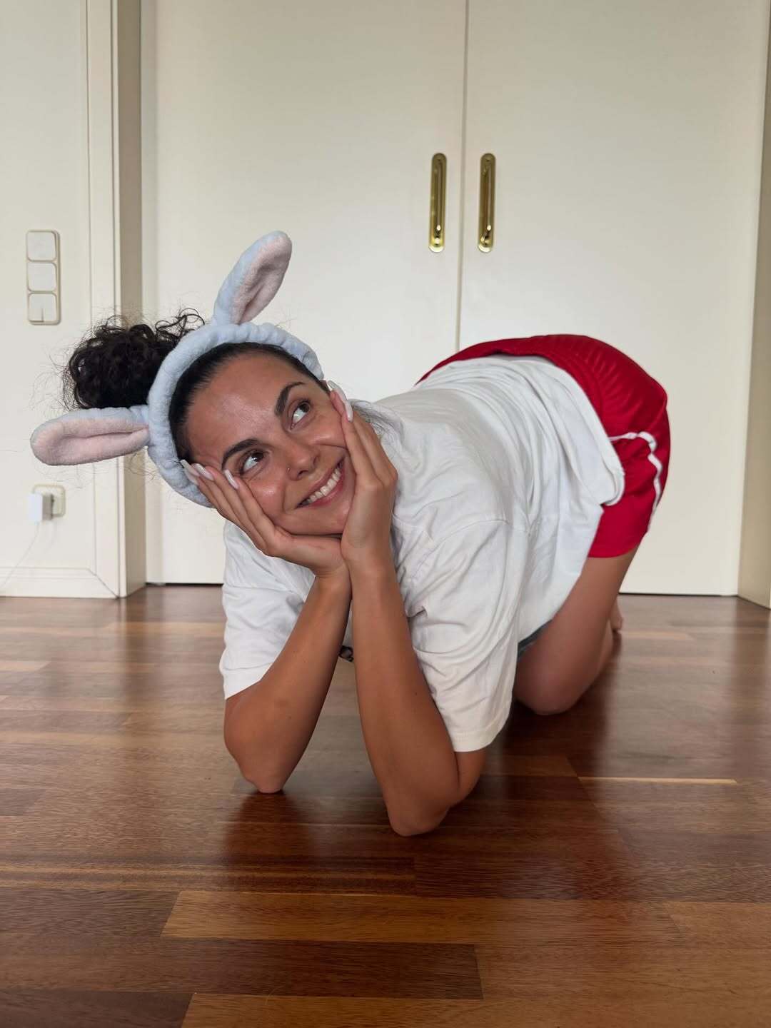 Для студийного образа Каменских снялась с макияжем и распущенными волосами. Для домашнего – в повязке с ушками и без грамма косметики.