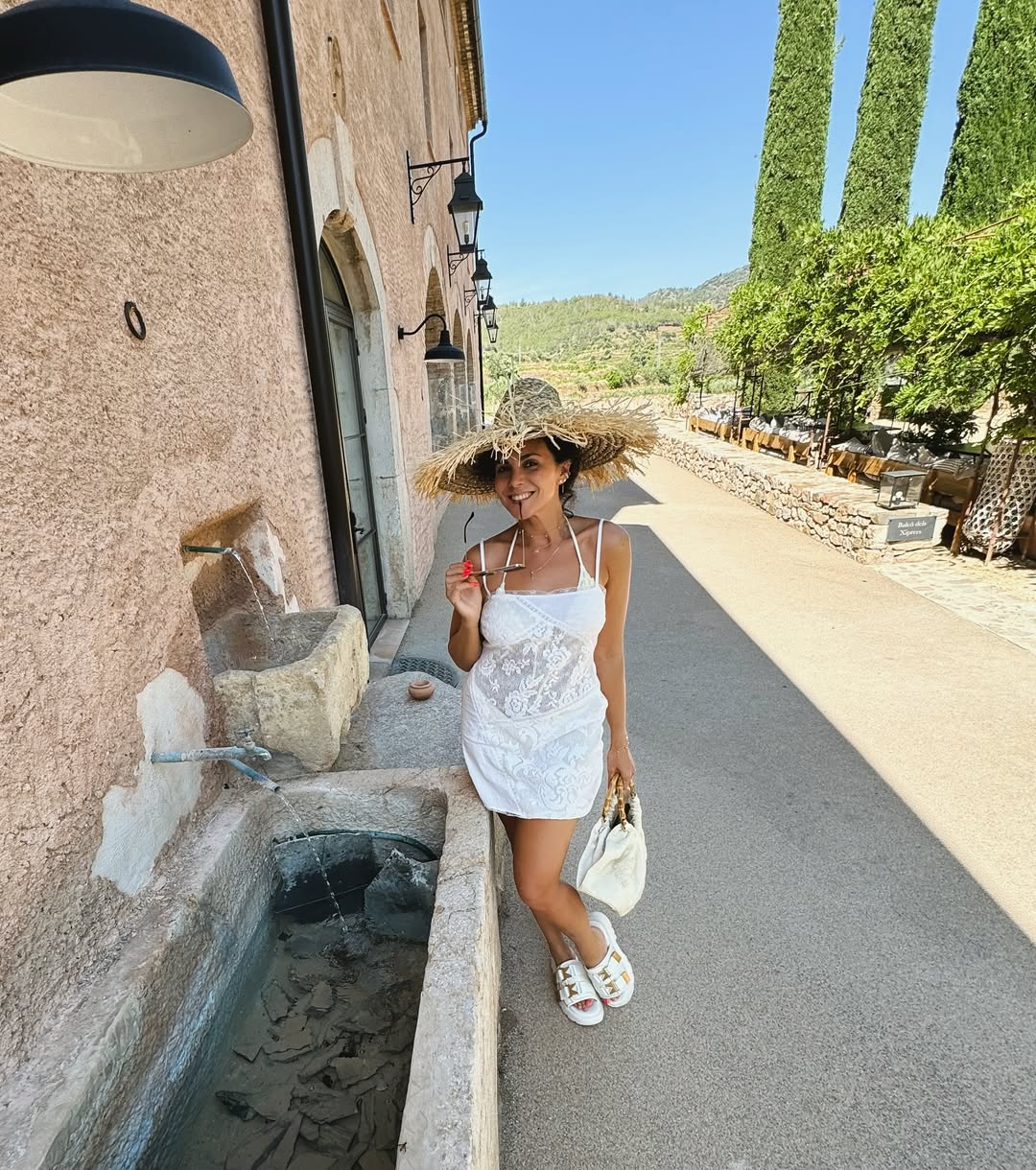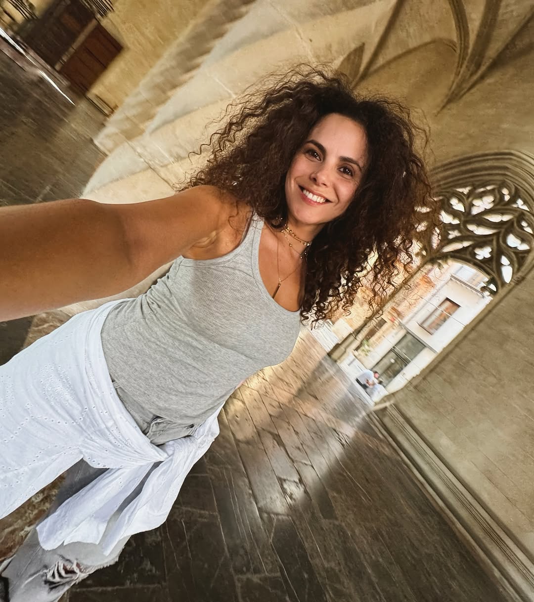 На фото она предстала во время своих прогулок. Она позировала в белом мини-платье, серой майке и джинсах, а также в спортивном топе и шортах.