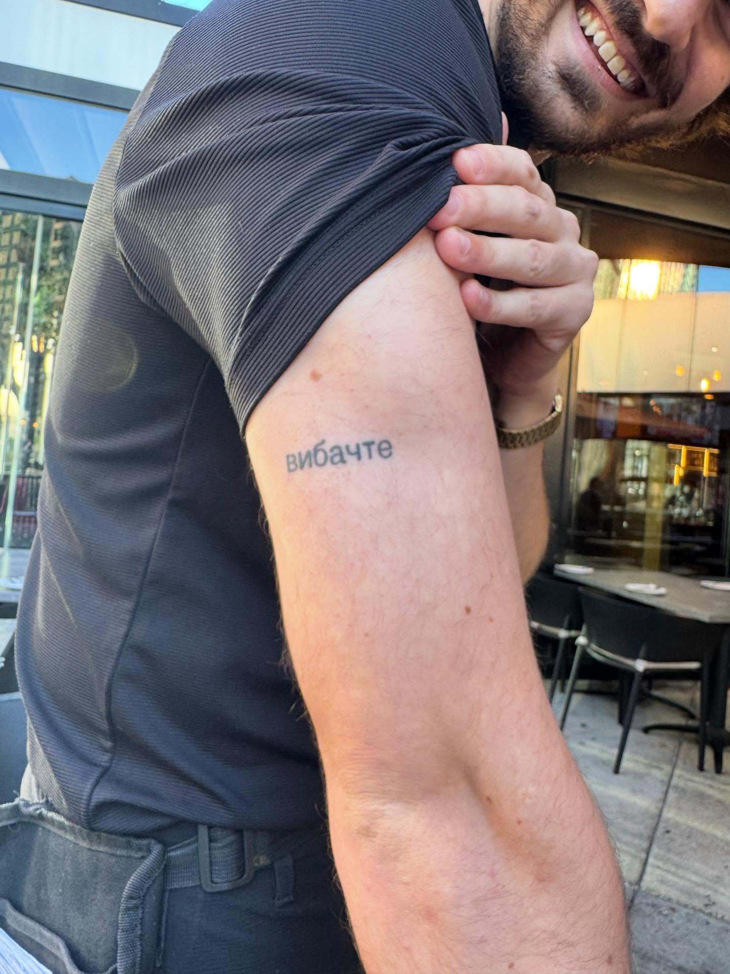 Каминская призналась, что разговорившись с ней, Джейкоб показал ей свою татуировку на правой руке. По словам блогера, увиденное стало для нее полным сюрпризом. Блогер проиллюстрировала пост снимком, на котором официант позирует, приподняв рукав футболки, чтобы продемонстрировать тату в виде слова "Вибачте".