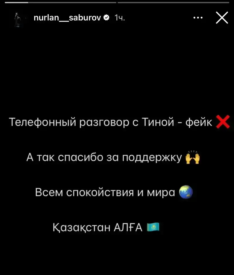 Женщина с голосом российской пропагандистки Тины Канделаки уговаривала человека, голос которого похож на голос казахстанского шоумена Нурлана Сабурова, высказать мнение "в хорошем ключе для нее и России" перед властями Казахстана, угрожая в случае отказа тем, что артист "окажется за бортом". Соответствующая аудиозапись тиражируется в сети.