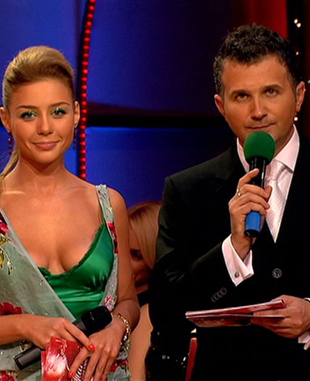 На одном из снимков он запечатлен вместе с украинской певицей Тиной Кароль, которая в течение нескольких сезонов была его соведущей по шоу "Танцы со звездами" на этом канале.