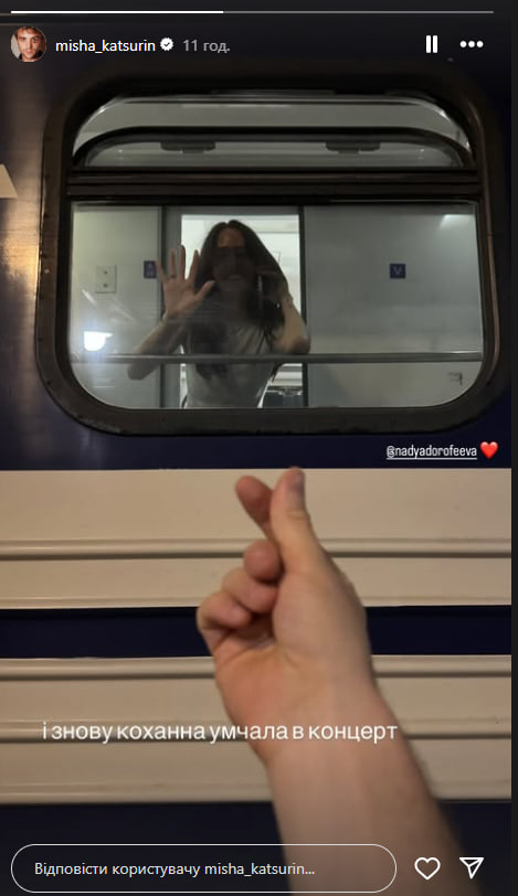 Кацурин провожал жену на гастроли и разместил в Instagram фото, на котором они запечатлены в момент прощания. На снимке Дорофеева изображена в вагоне, а Кацурин – на перроне.