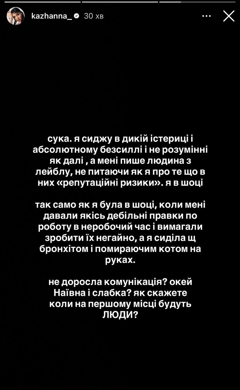 Кажанна также публично обратилась к лейблу, поинтересовавшись, когда у них люди будут на первом месте.