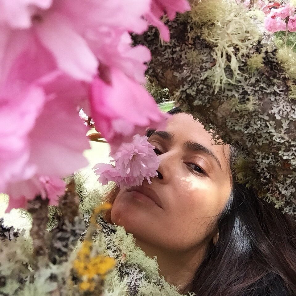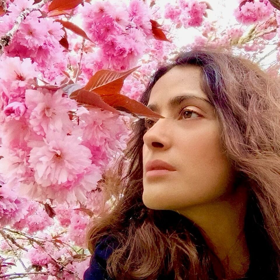 Хайек снялась в саду среди цветущей сакуры. Она позировала без видимой косметики. На фотографиях лицо звезды снято вблизи. Актриса позировала с распущенными волосами.