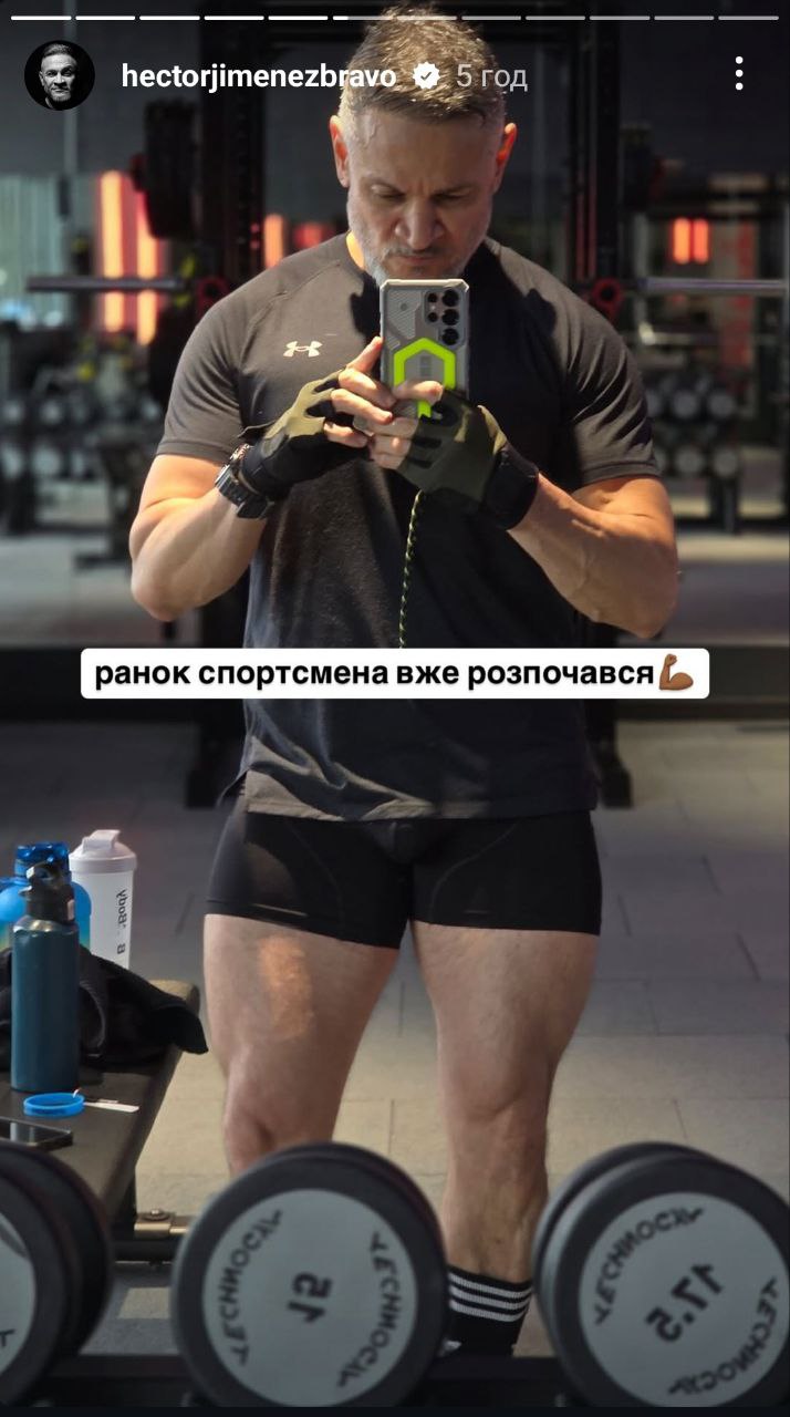 Хименес-Браво показал фото, на котором позирует в спортзале.