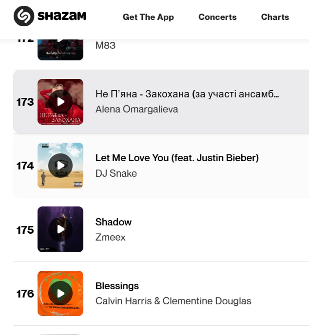 По состоянию на 23 ноября песня Омаргалиевой находится на 173-м месте в Shazam.