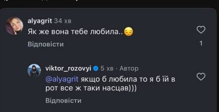 Розовый после интервью Мерзликиной для украинской ведущей Маши Ефросининой вышел в Instagram и отметил, что "с тем, какой я аморальный муж, мы разобрались. Еще бы разобраться с отчетами по средствам", намекая, что бывшая жена проводила нечестные махинации с деньгами, которые люди донатили ему на восстановление после ранения на фронте.