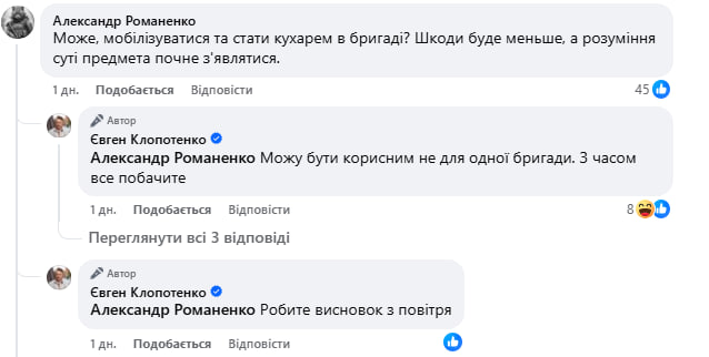 Клопотенко ответил, почему не мобилизовался поваром на фронт