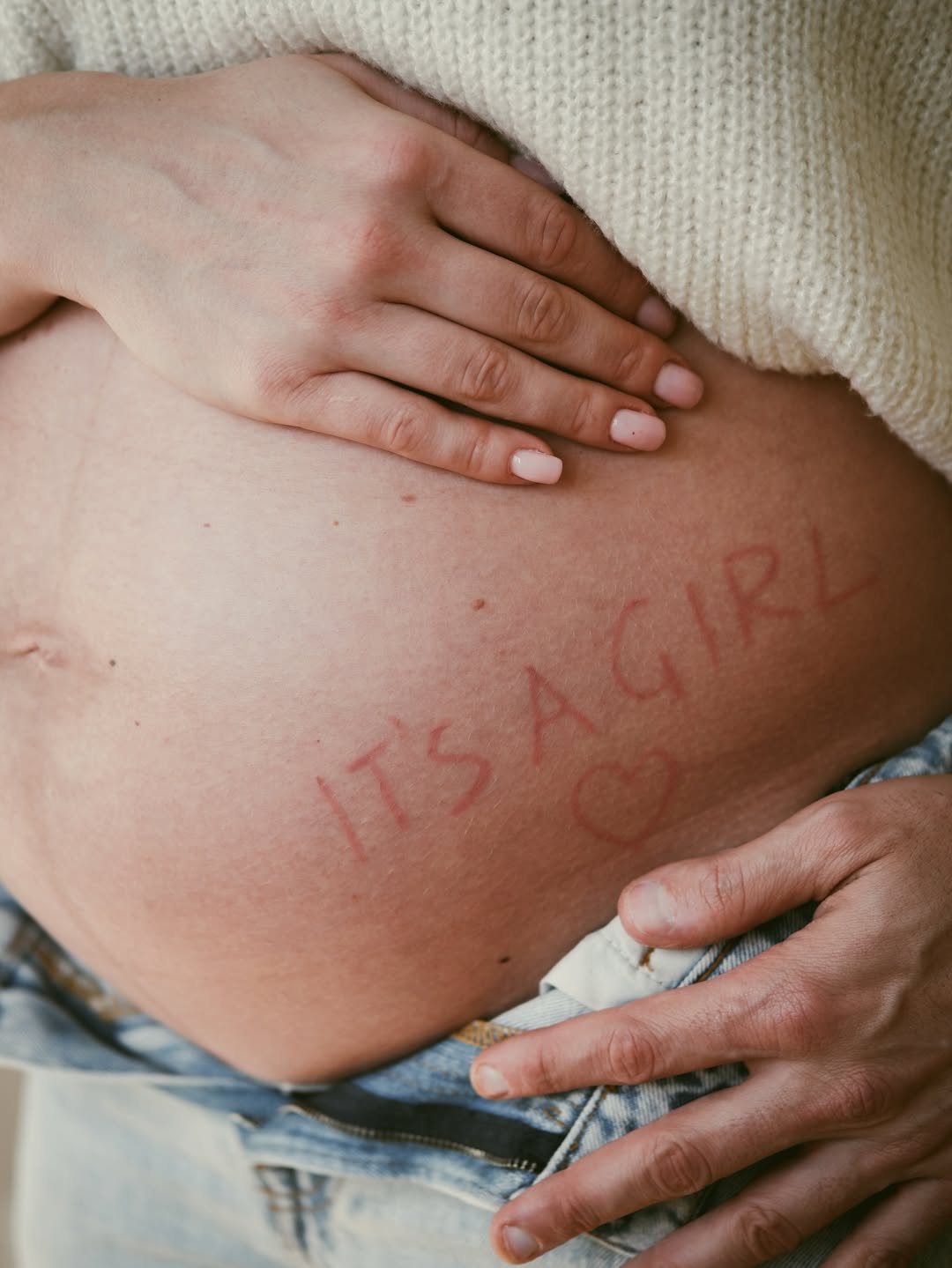 На последнем снимке в карусели Харлан запечатлена с заметно уже округлившимся животом, на котором написано, что у пары родится девочка.