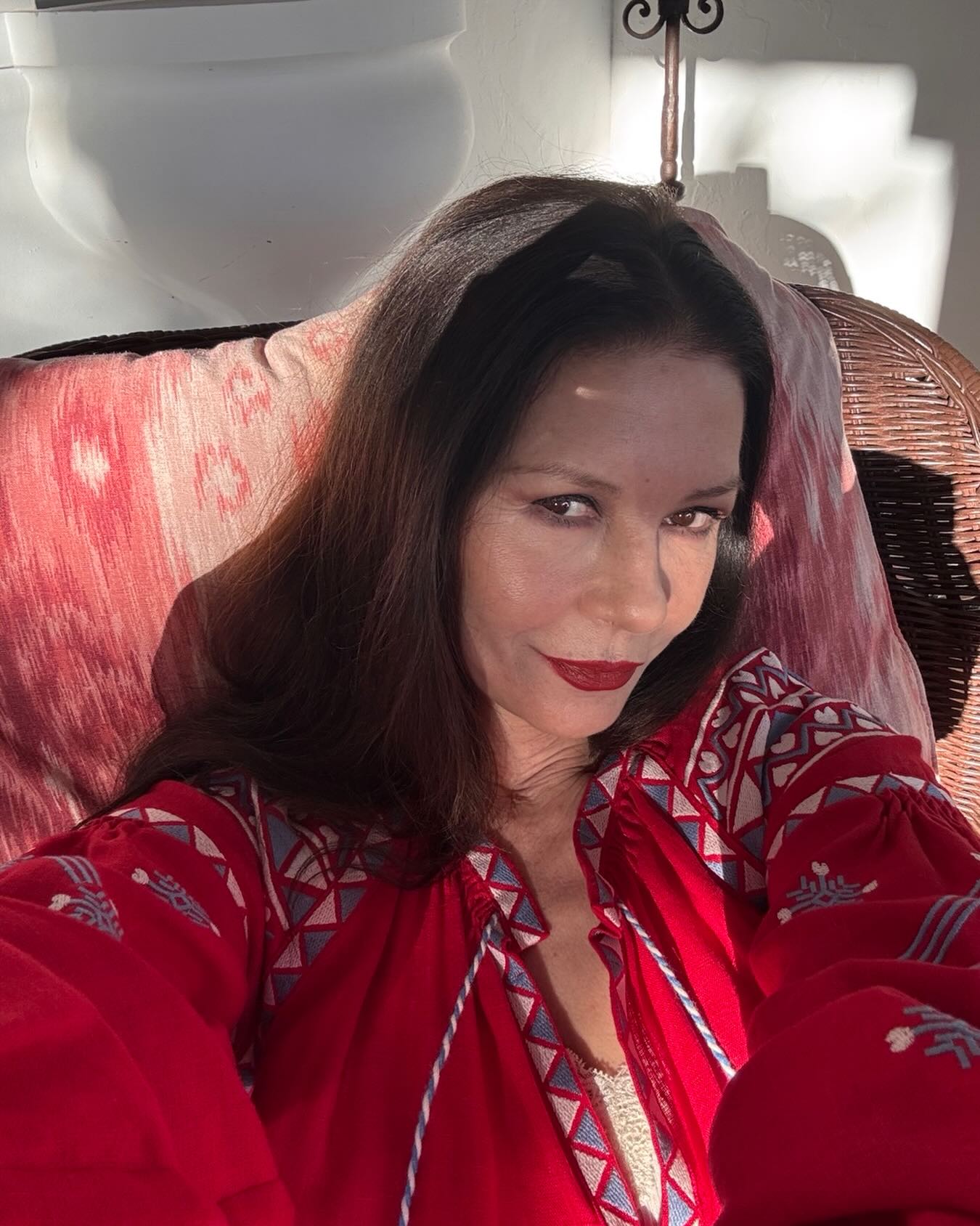 Звезда американского сериала "Уэнздей", американская актриса Кэтрин Зета-Джонс 6 апреля разместила в соцсети Threads фото, на котором запечатлена в вышиванке. Звезда выбрала наряд красного цвета с бело-голубым орнаментом по случаю Пасхи.