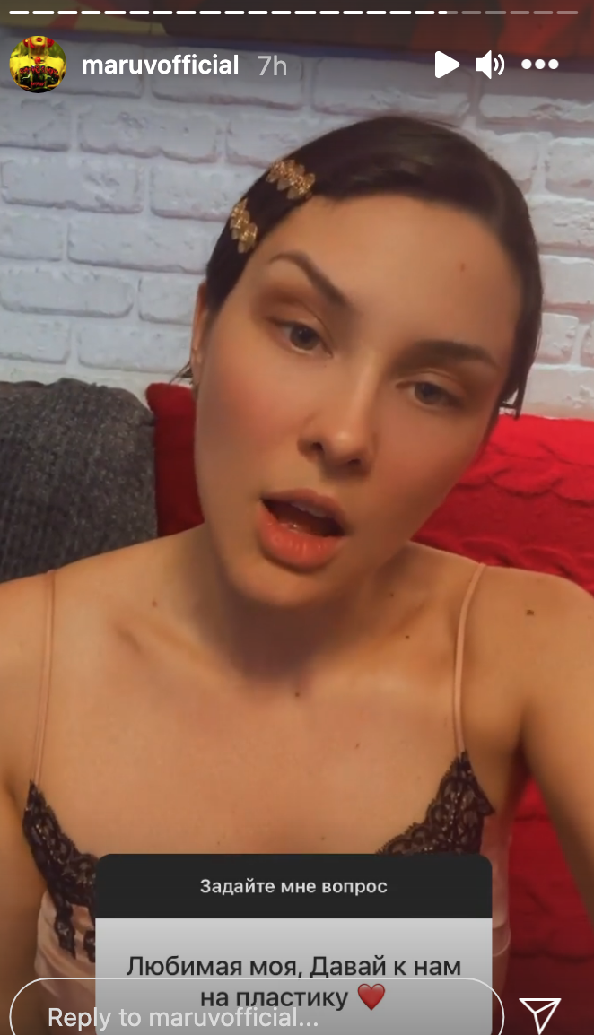Украинская певица Maruv, регулярно выступающая в России, поздно ночью 4 августа загрузила в Instagram Stories видеоответы на вопросы своих подписчиков.