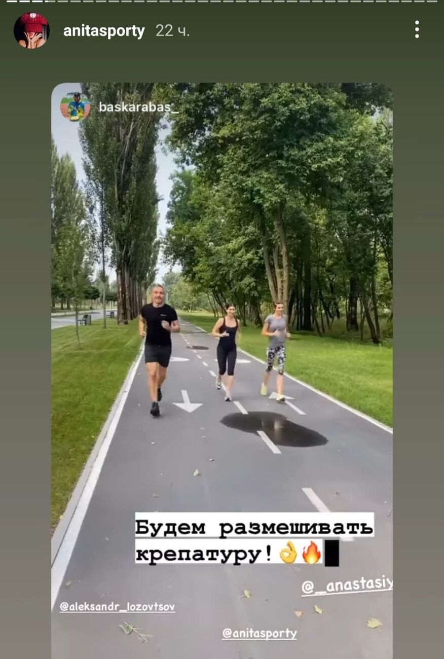 Украинский фитнес-тренер Анита Луценко 30 августа в Instagram Stories разместила серию роликов, на которых запечатлена во время совместной пробежки в парке со своим возлюбленным Александром Лозовцовым.