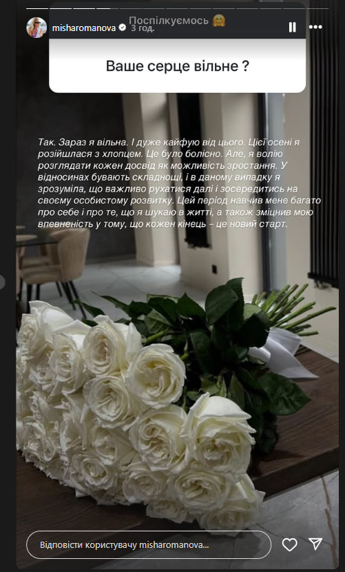 Она добавила, что рассталась со своим бойфрендом осенью 2024 года. Миша Романова не стала называть причины расставания.