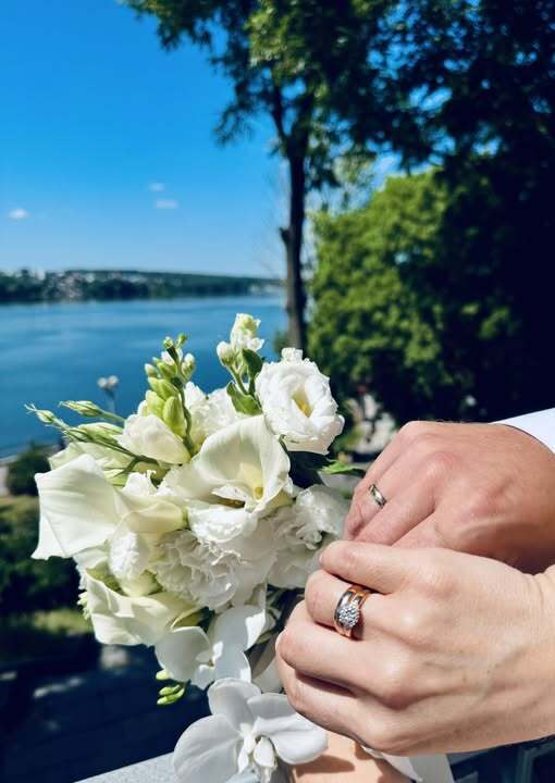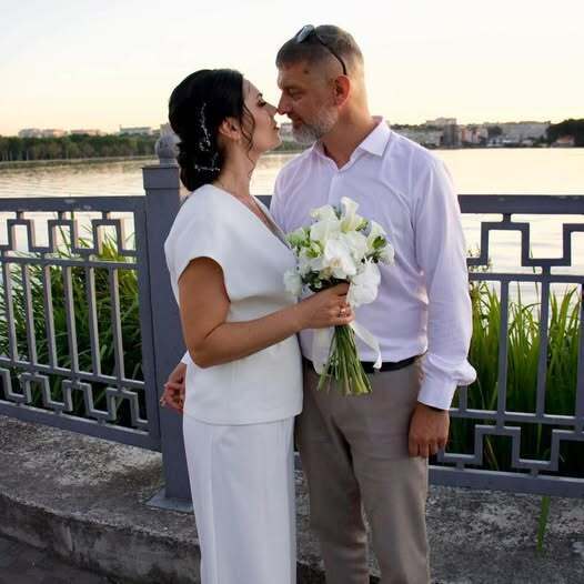 Также он опубликовал фотографию, на которой позирует с супругой Мирославой. Она одета в белое платье и держит свадебный букет.
