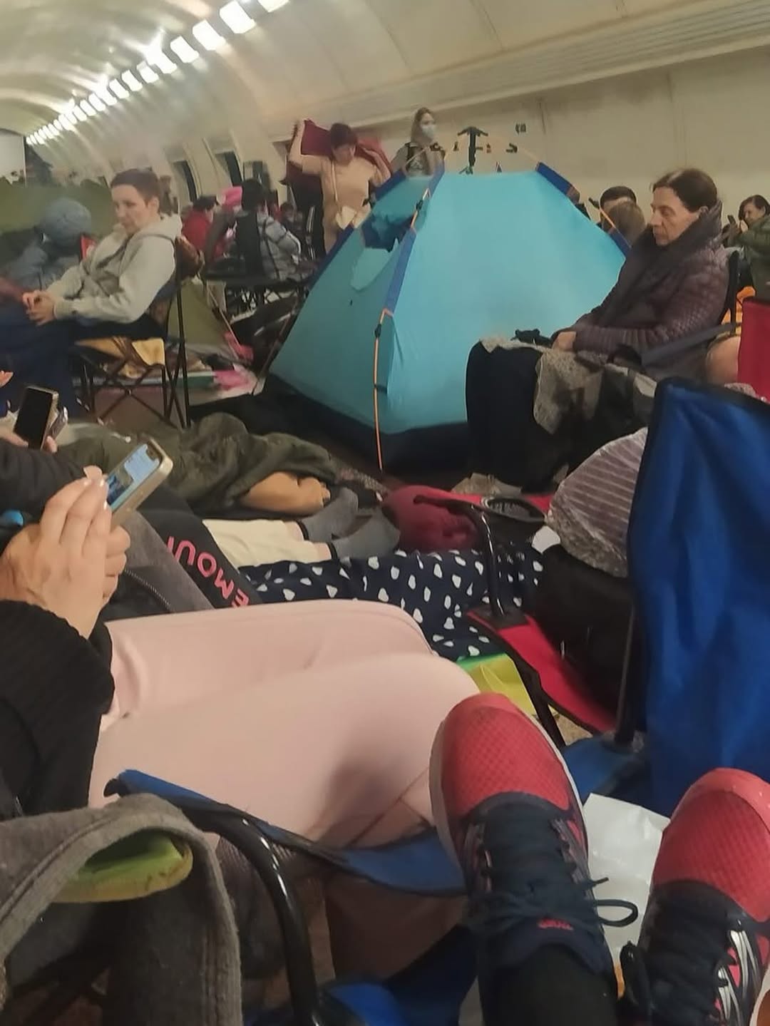 Мозговая показала, что весь вестибюль станции заполнен людьми, которые пришли со своими стульями и матрацами, чтобы переждать атаку страны-агрессора России на столицу Украины.