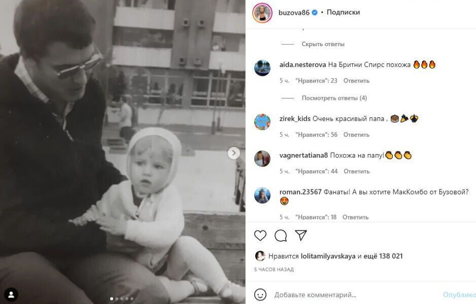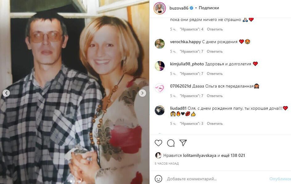 Публикацию 35-летняя ведущая посвятила дню рождения отца – Игоря Дмитриевича Бузова, а в подписи к ней перечислила, за что она ему благодарна.