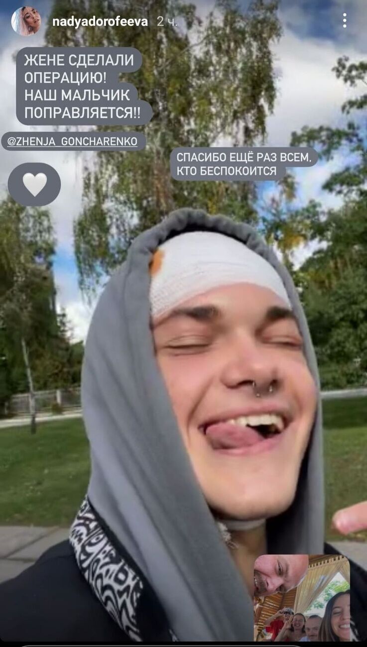 Избитый в начале августа сотрудником УГО (Управления государственной охраны) танцор балета украинской певицы Нади Дорофеевой Евгений Гончаренко перенес операцию на черепе – ему вставили титановую пластину вместо поврежденной кости. Об этом в Instagram Stories 27 сентября сообщила Дорофеева.