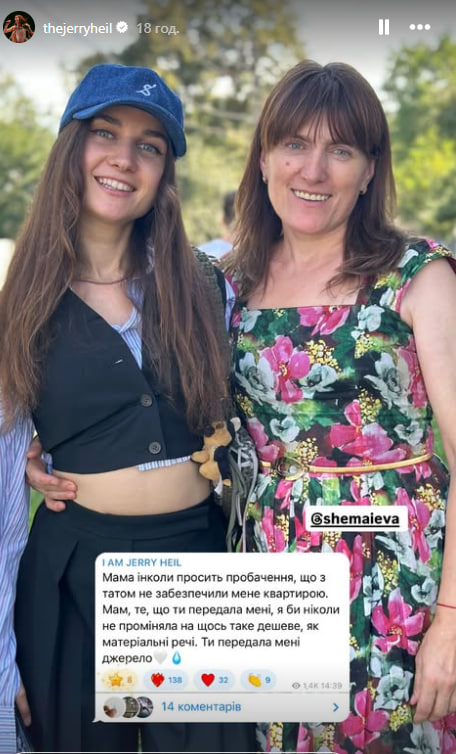 Украинская певица Jerry Heil 20 августа в Instagram Stories рассказала, что получила в наследство от своей матери Людмилы Шемаевой, которая также является вокалисткой.