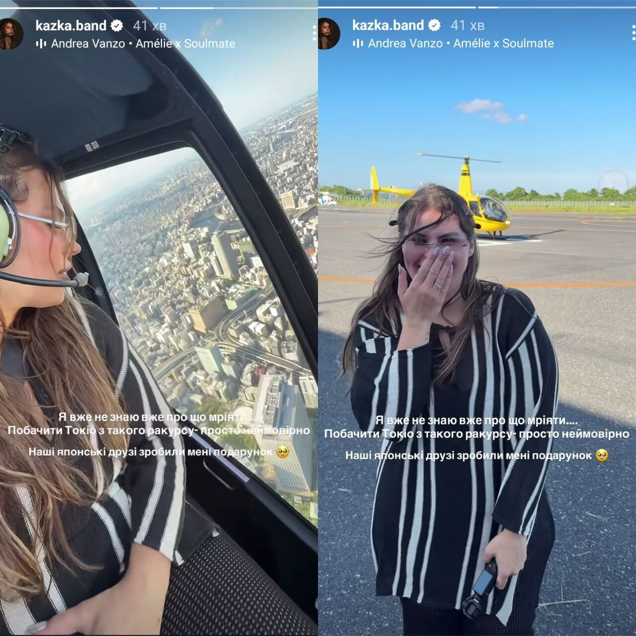 "Я уже не знаю, о чем мечтать... Увидеть Токио с такого ракурса – просто невероятно", – написала она.
