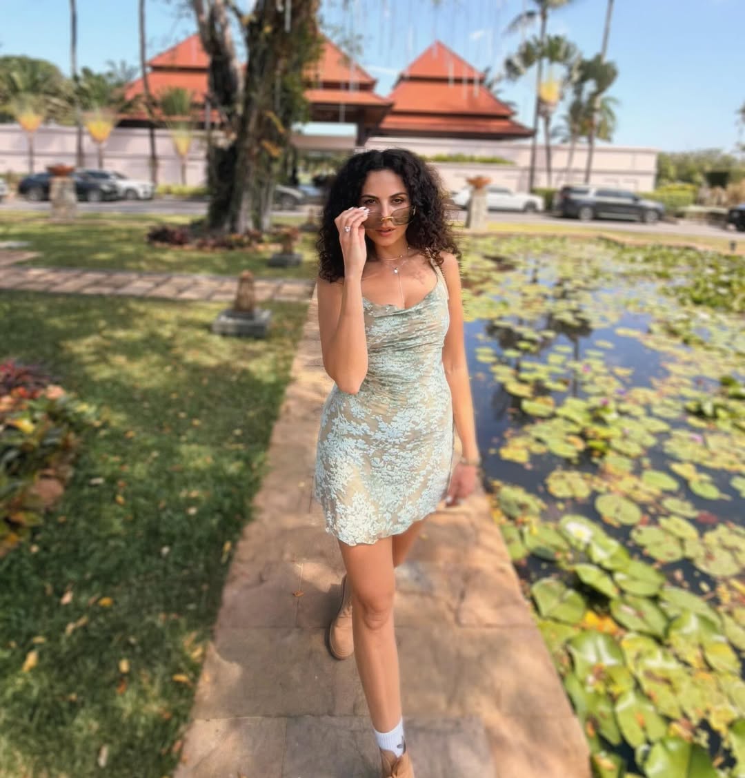 Каменских снялась в кружевном платье-комбинации и ботинках.