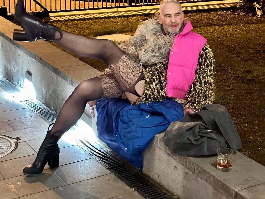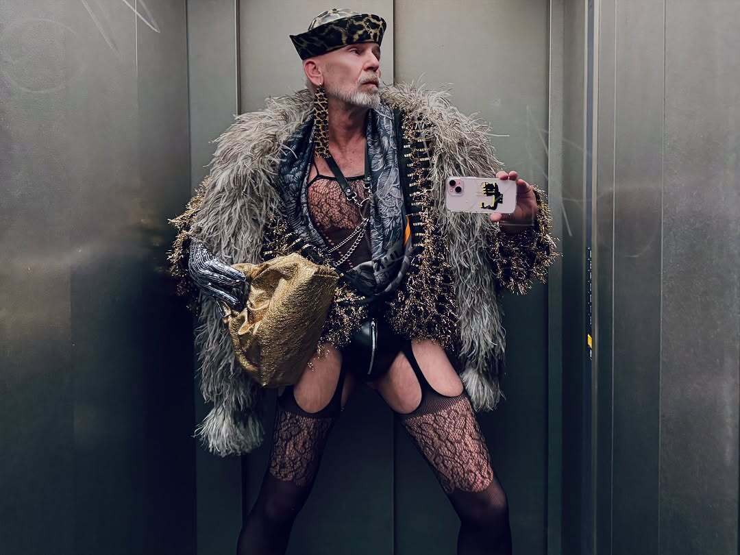 Немецкий стилист Франк Питер Уайлд в чулках и шубе посетил Молодой театр в Киеве