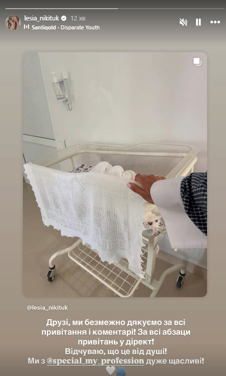 Украинская ведущая Леся Никитюк 20 июня в Instagram Stories впервые официально прокомментировала рождение первенца.