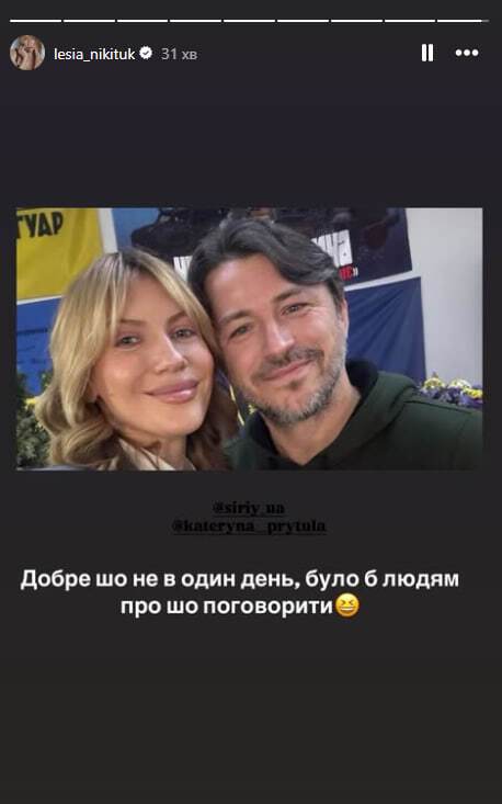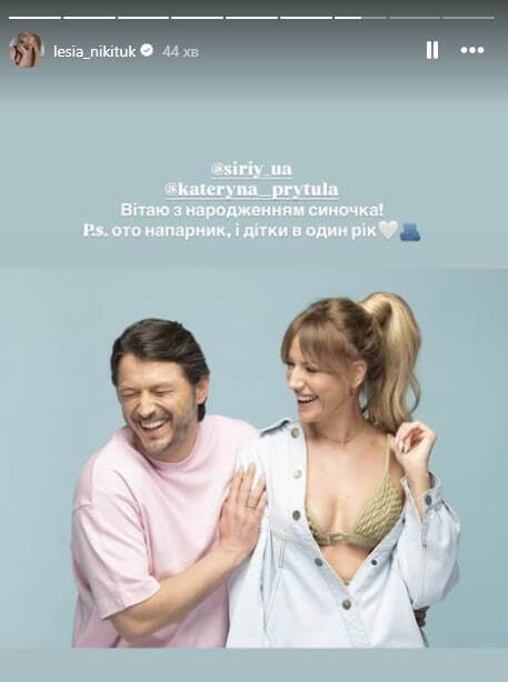 Украинская ведущая Леся Никитюк 4 августа в Instagram Stories отреагировала на неожиданное пополнение в семье украинского волонтера Сергея Притулы, вместе с которым вела шоу "Хто зверху?" на "Новом канале".