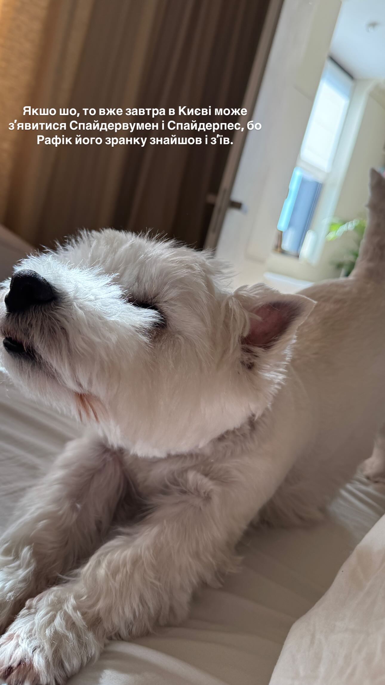 "Если что, то уже завтра в Киеве может появиться Спайдервумэн и Спайдерпес, потому что Рафик его утром нашел и съел", – отметила телеведущая.