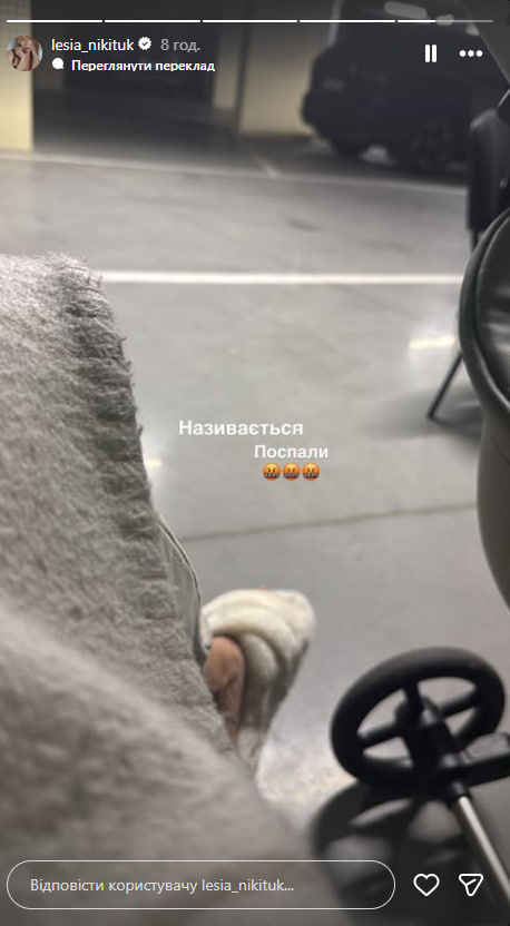 Украинская ведущая Леся Никитюк во время очередной массированной атаки российских оккупантов на украинскую столицу провела ночь в подземном паркинге. Об этом она сообщила 14 ноября, разместив соответствующее фото в Instagram Stories.