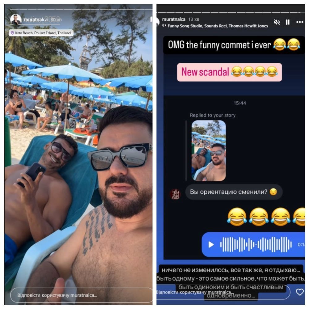 Налчаджиоглу, который в одиночестве отправился отдыхать на Пхукет (Таиланд), "чтобы найти себя", периодически делится в сети снимками и видео, на которых запечатлен в компании своего друга.
