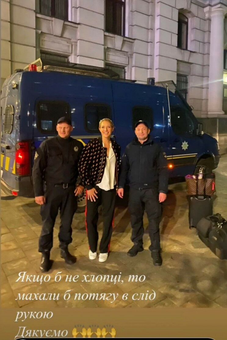 Осадчая также поделилась коротким видео, на котором запечатлено, как полицейские помогают ей загрузить в служебный автомобиль сумки, а после ведущая сфотографировалась вместе с людьми в форме.