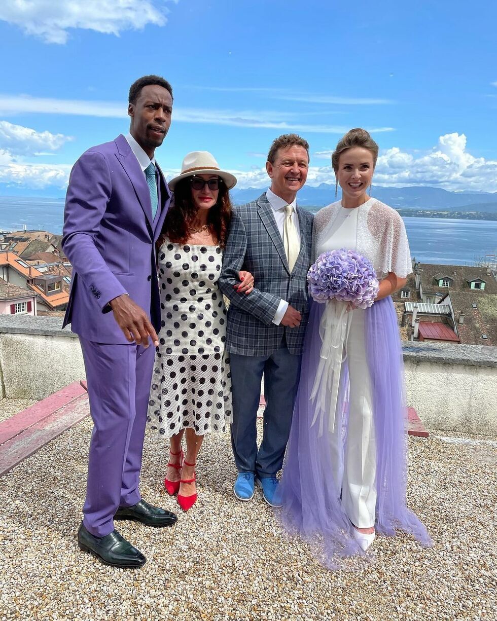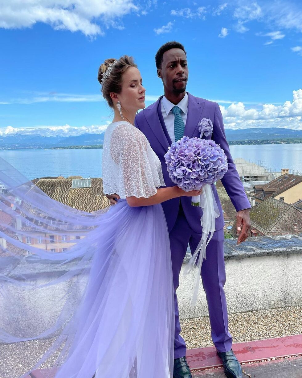 Судя по геолокации, указанной в посте, свадьбу 26-летняя Свитолина и 34-летний Монфис отпраздновали в швейцарском городе Ньон. Невеста была в белом брючном костюме с нежно-фиолетовой юбкой-накидкой, жених – в строгом фиолетовом костюме.