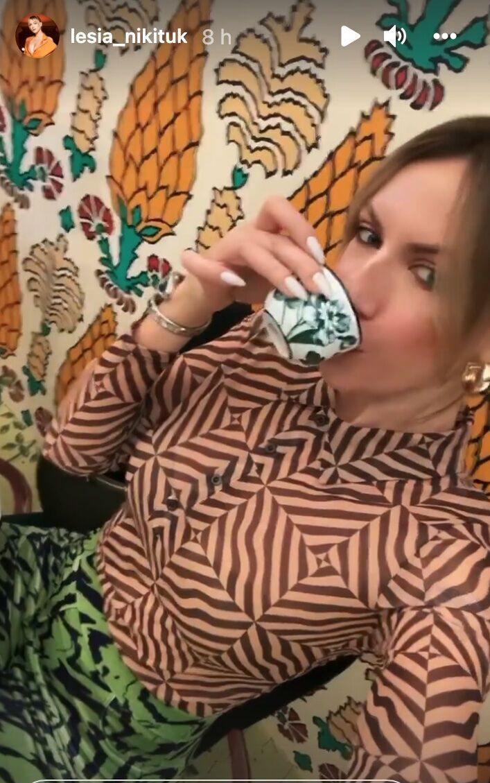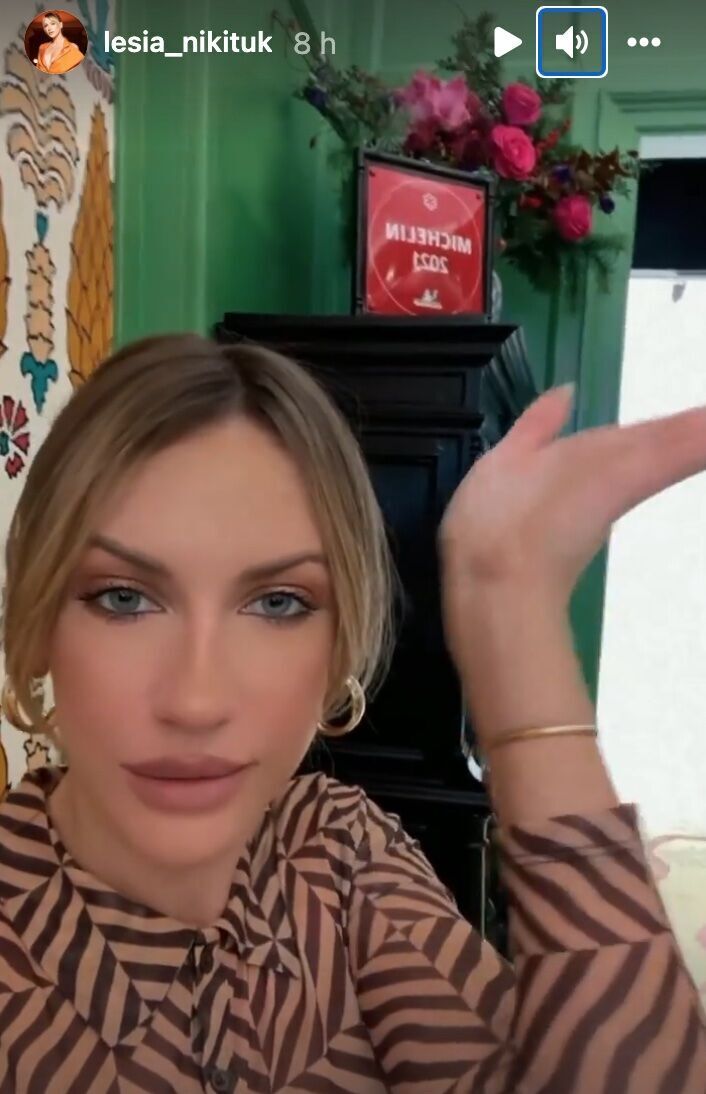 Украниская телеведущая Леся Никитюк, которая сейчас отдыхает во Флоренции, 24 ноября выложила в Instagram Stories видео своего обеда в ресторане от известного итальянского модного дома Gucci.