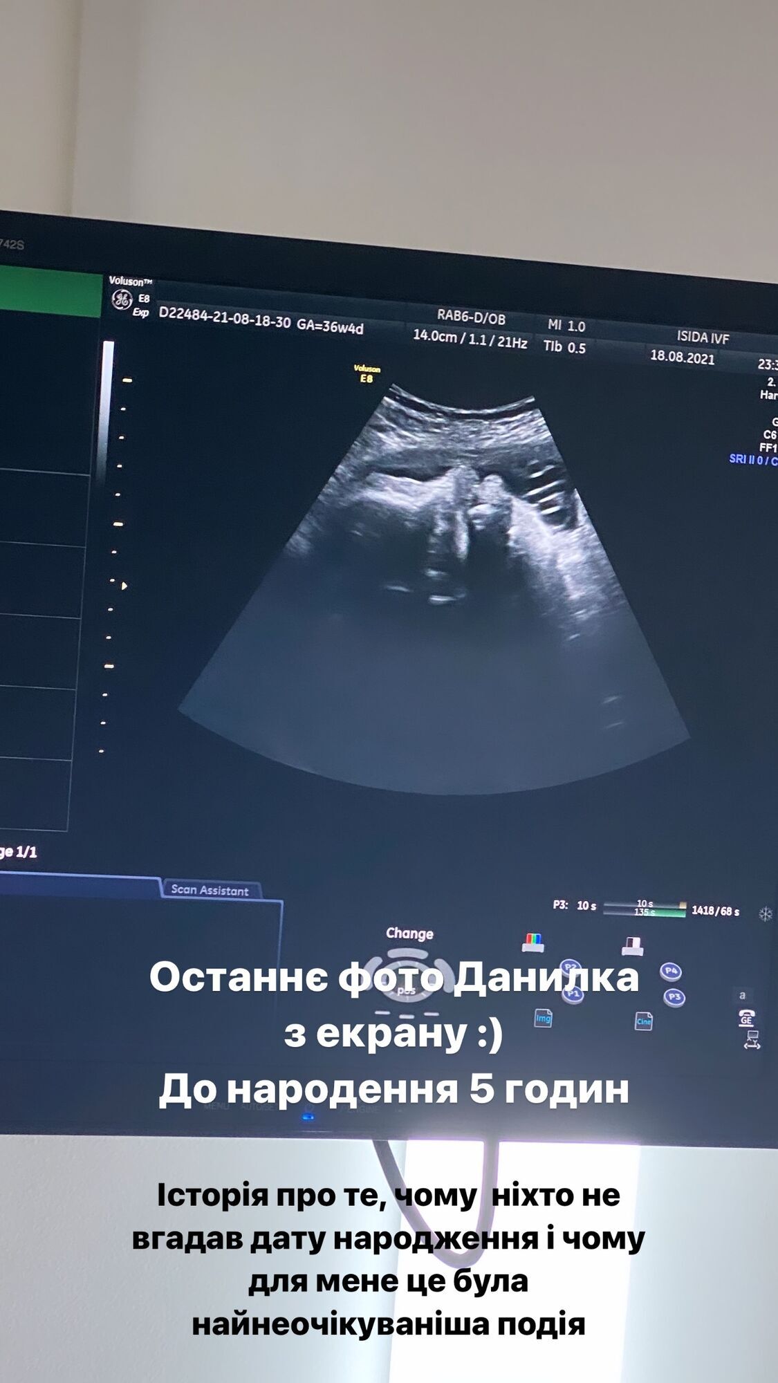 "Последнее фото Данилки с экрана. До рождения пять часов", – отметила она.