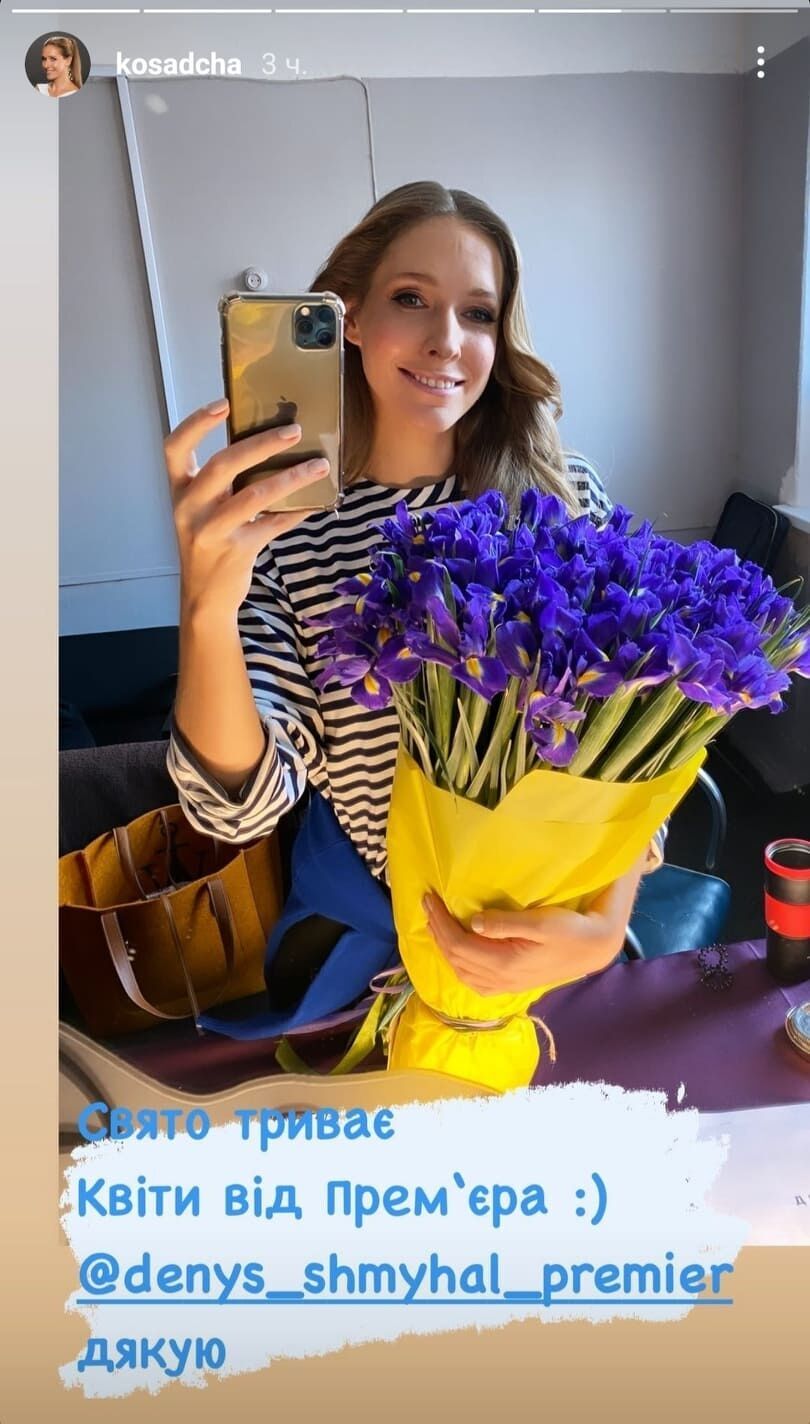 Украинская ведущая Катя Осадчая поблагодарила украинского премьер-министра Дениса Шмыгаля за цветы.