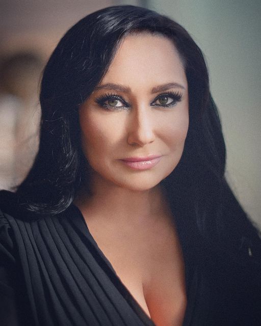 Она предстала в декольтированном топе, с длинными волосами и интенсивным макияжем глаз.
