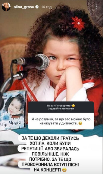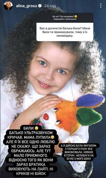 Украинская певица Grosu (Алина Гросу) 17 февраля в Instagram Stories призналась, что в детстве ее били родители.