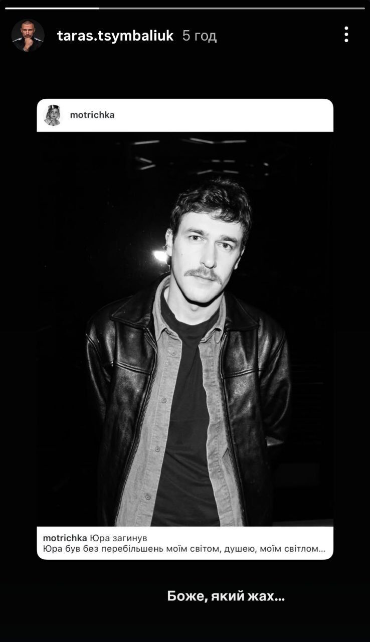 Актер Тарас Цымбалюк в Instagram Stories прокомментировал гибель коллеги.