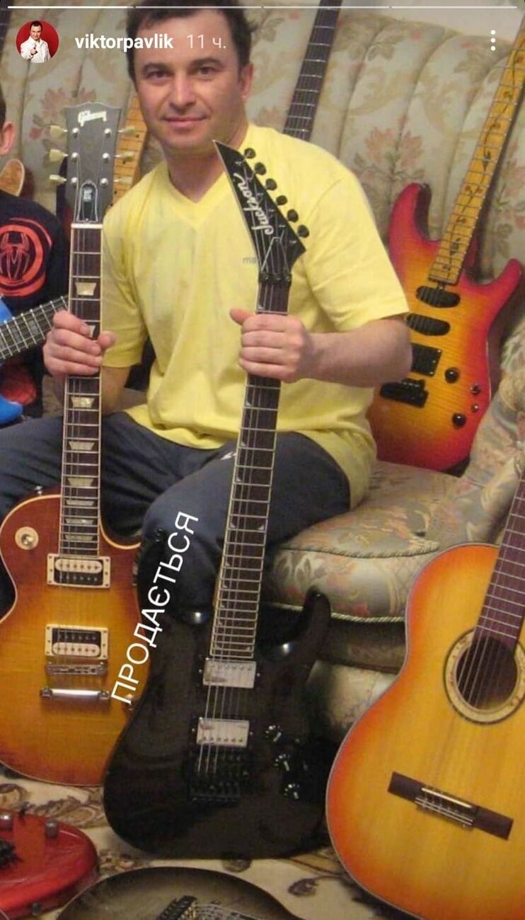 Украинский певец Виктор Павлик 1 июля в Instagram Stories разместил фото, на котором запечатлен в окружении гитар.