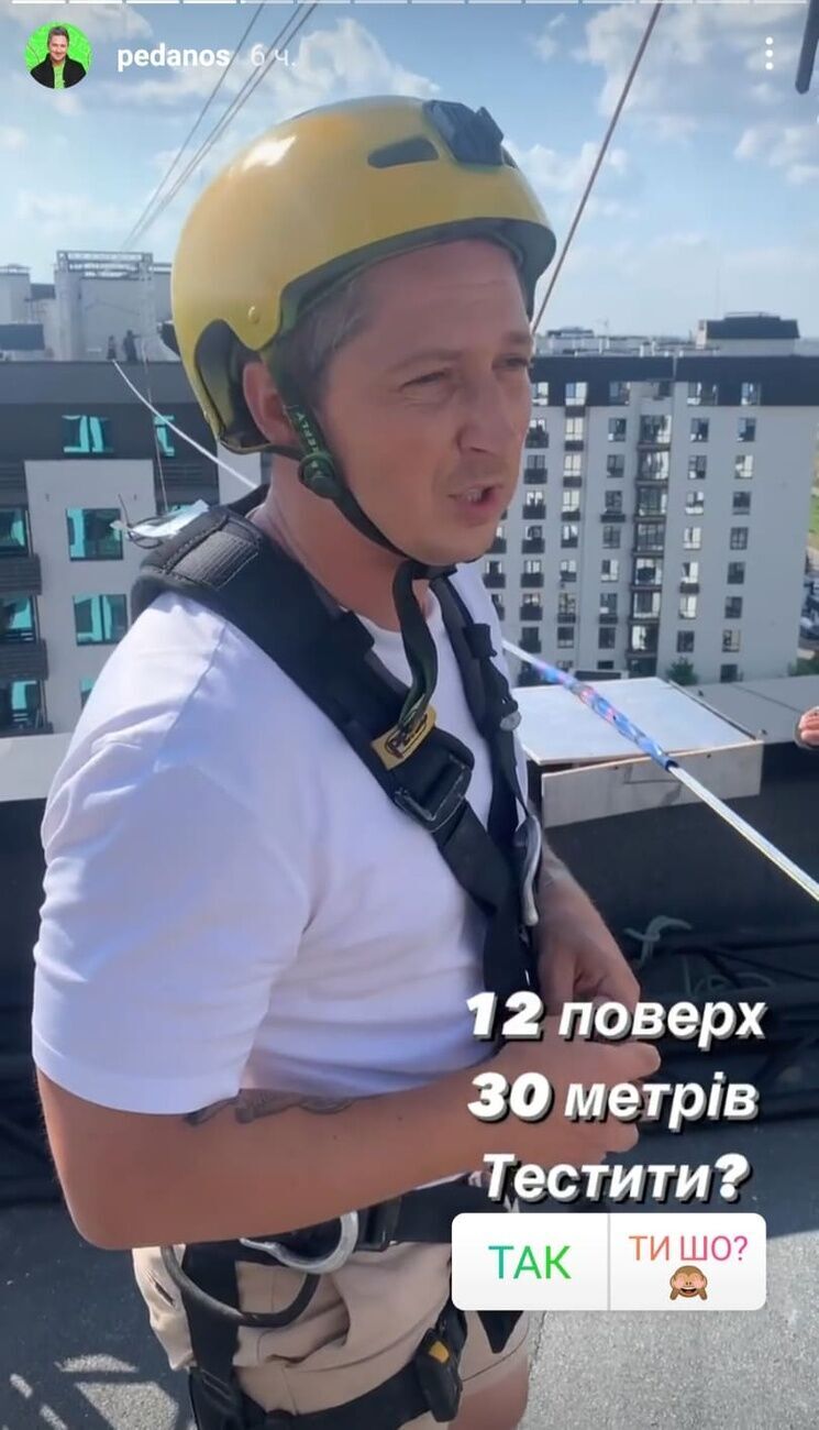 "12 этаж. 30 метров. Тестировать?" – написал он в комментарии к ролику, позируя в экипировке.