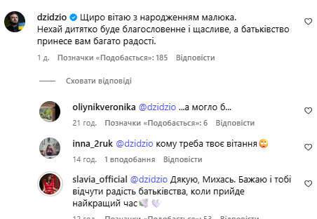 "Спасибо, Мишенька. Желаю и тебе ощутить радость отцовства, когда придет самое лучшее время", – написала она.
