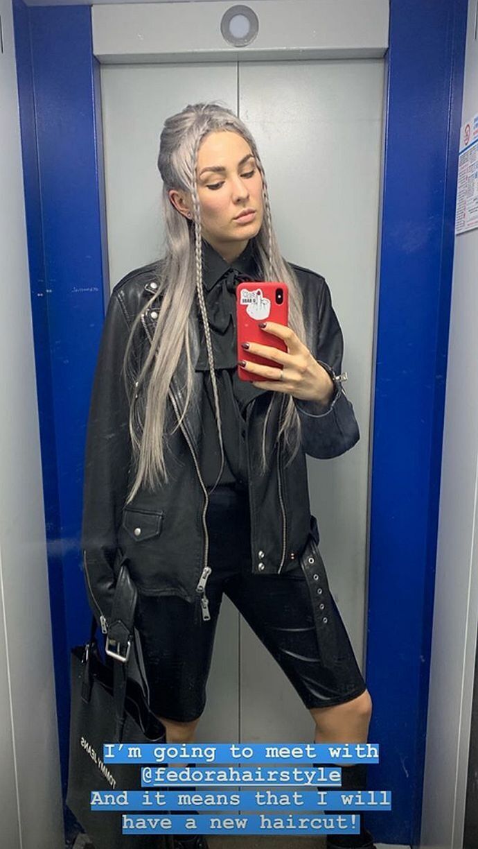 На одном из снимков она запечатлена с пепельными длинными волосами. В подписи к снимку она отметила, что идет стричься.