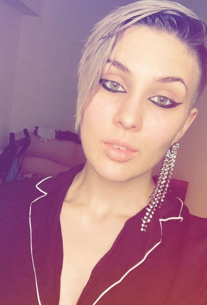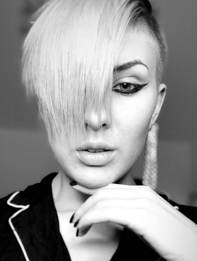 На других фото она уже с короткими платиновыми волосами.