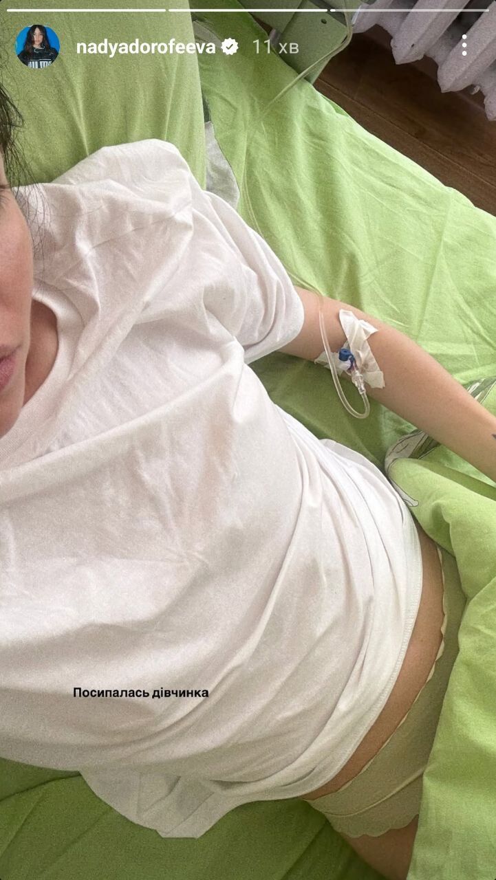 Украинская певица Надя Дорофеева 4 июня в Instagram Stories обнародовала фото из больницы.