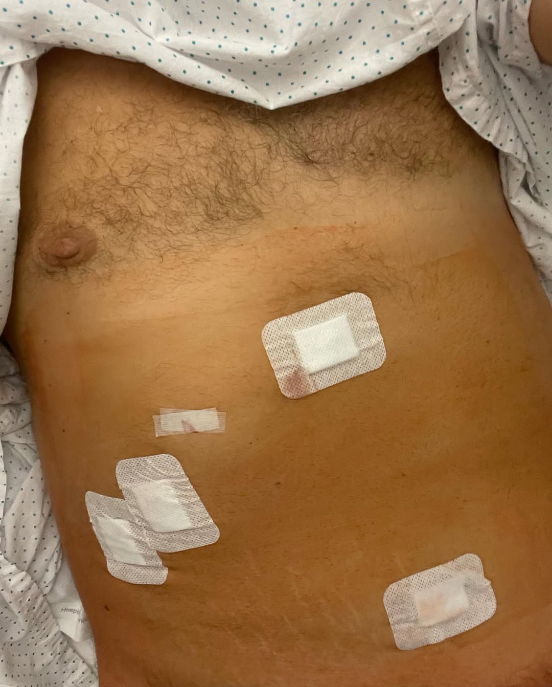 Потап показал снимок, сделанный в больнице. На его торсе приклеено множество медицинских пластырей.