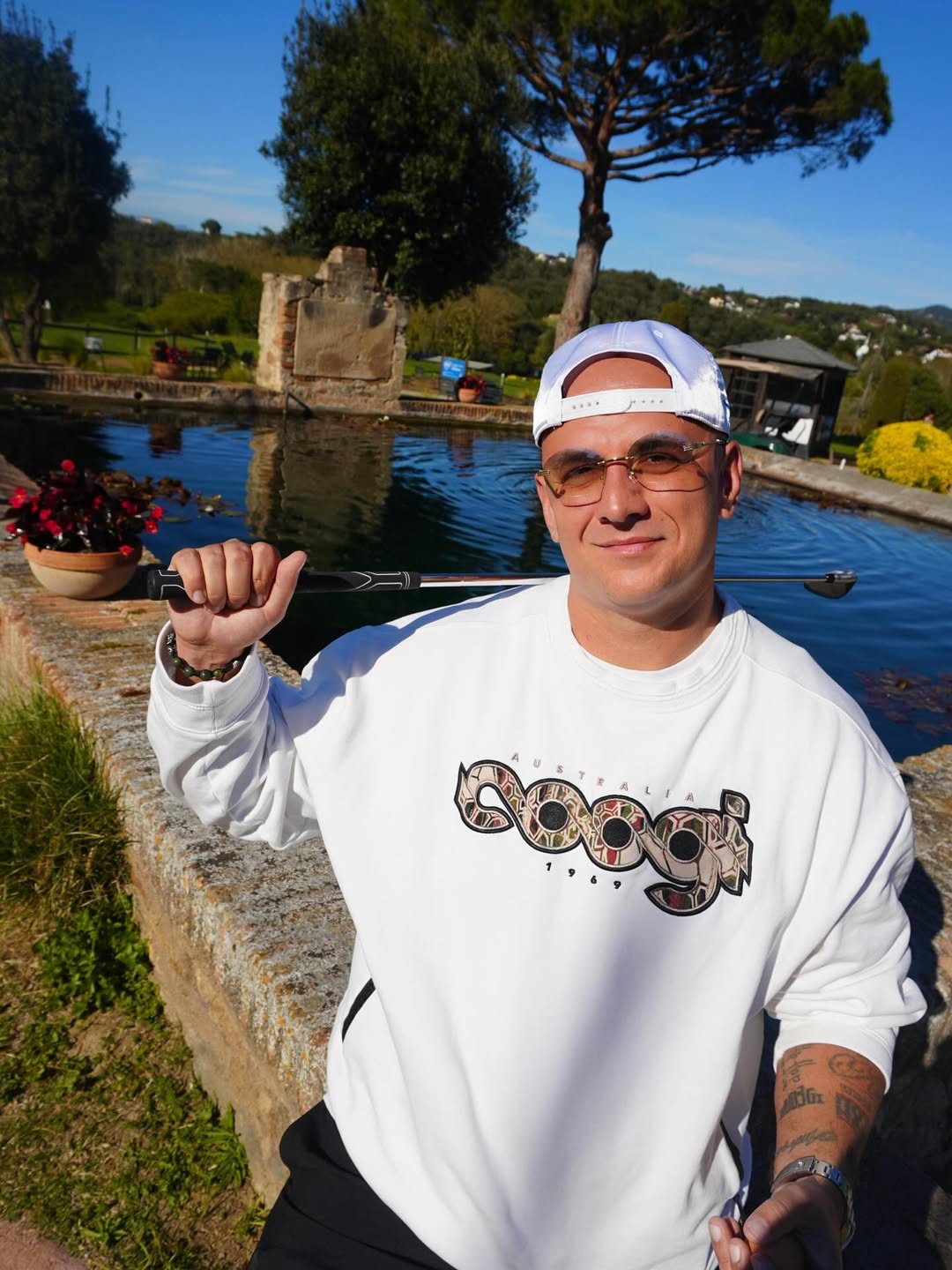 На снимках он запечатлен в свитшоте, шортах и кепке.